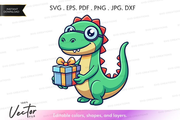 Illustration Cartoon Friendly Colorful Bow Present Gift Glasses Dinosaur