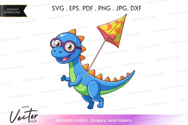 Cartoon Fun Playful Happy Blue Glasses Kite Dinosaur