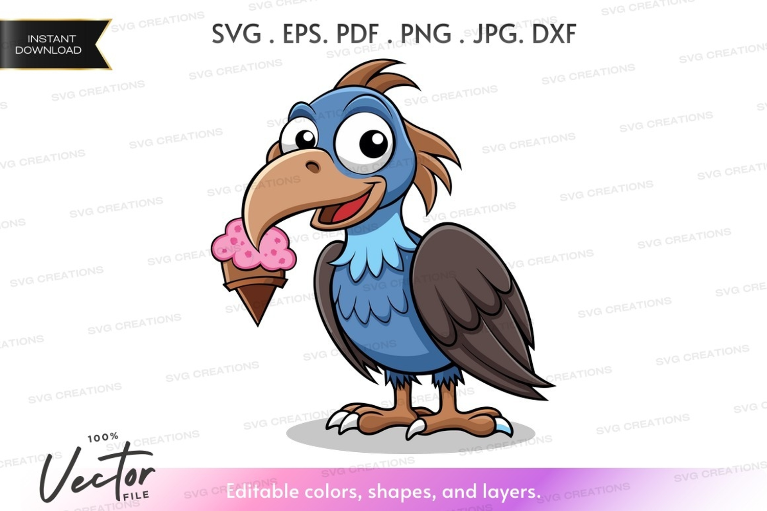 Cartoon Funny Animal Cute Happy Bird Ice Cream Vector Clipart