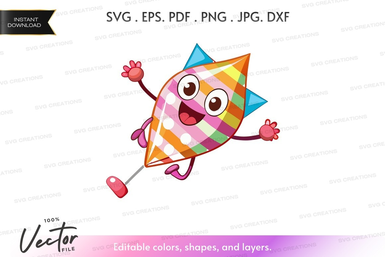 Cartoon Vector Happy Colorful Clipart Flying Kite