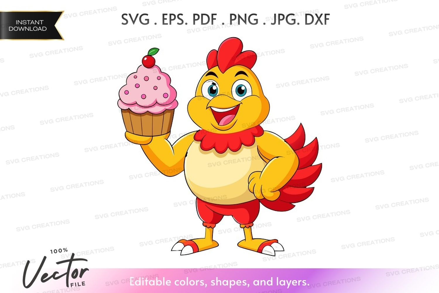 Happy chicken with cupcake example image 1