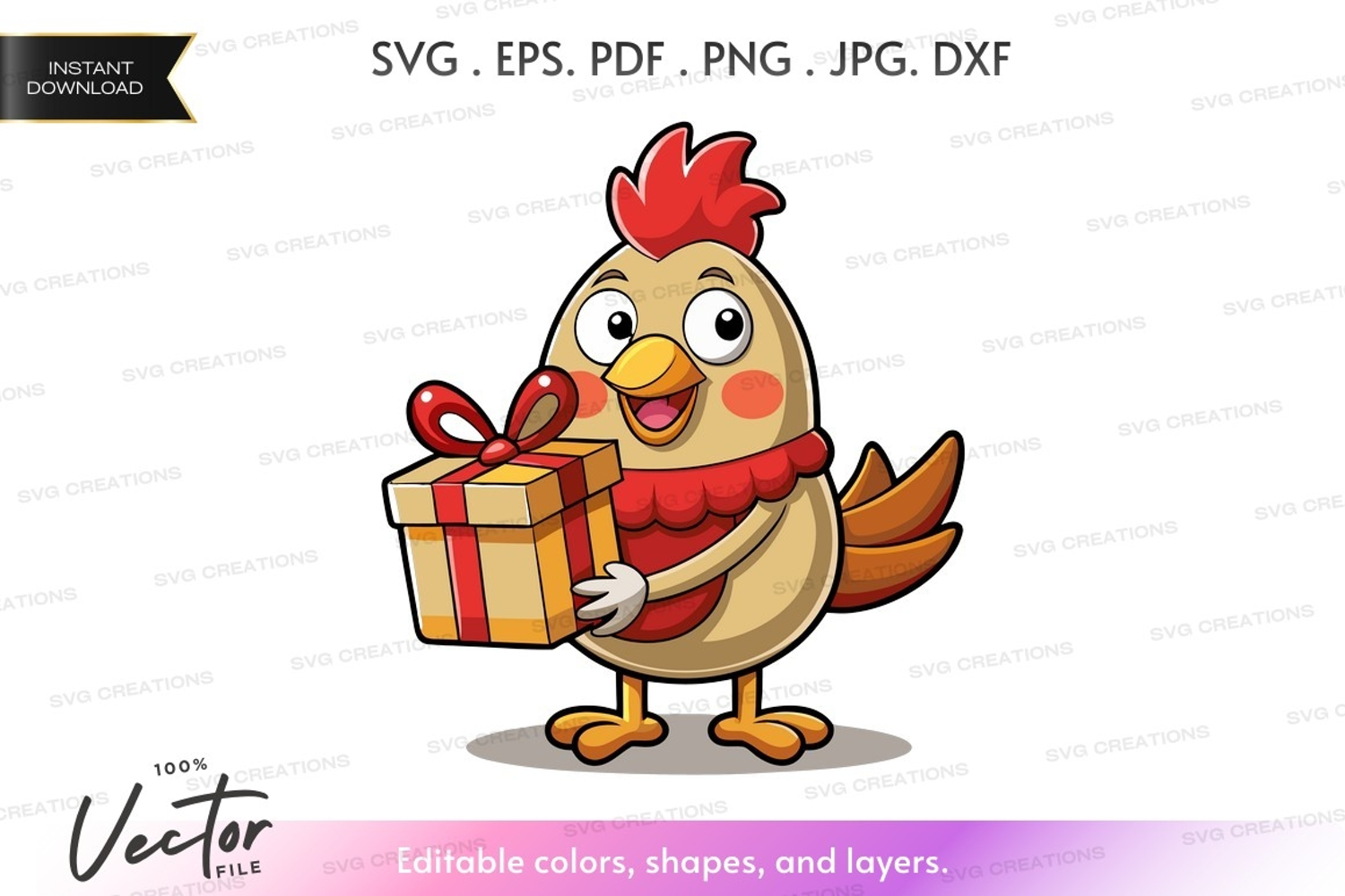 Illustration Cartoon Scarf Gift Cheerful Chicken Red Ribbon