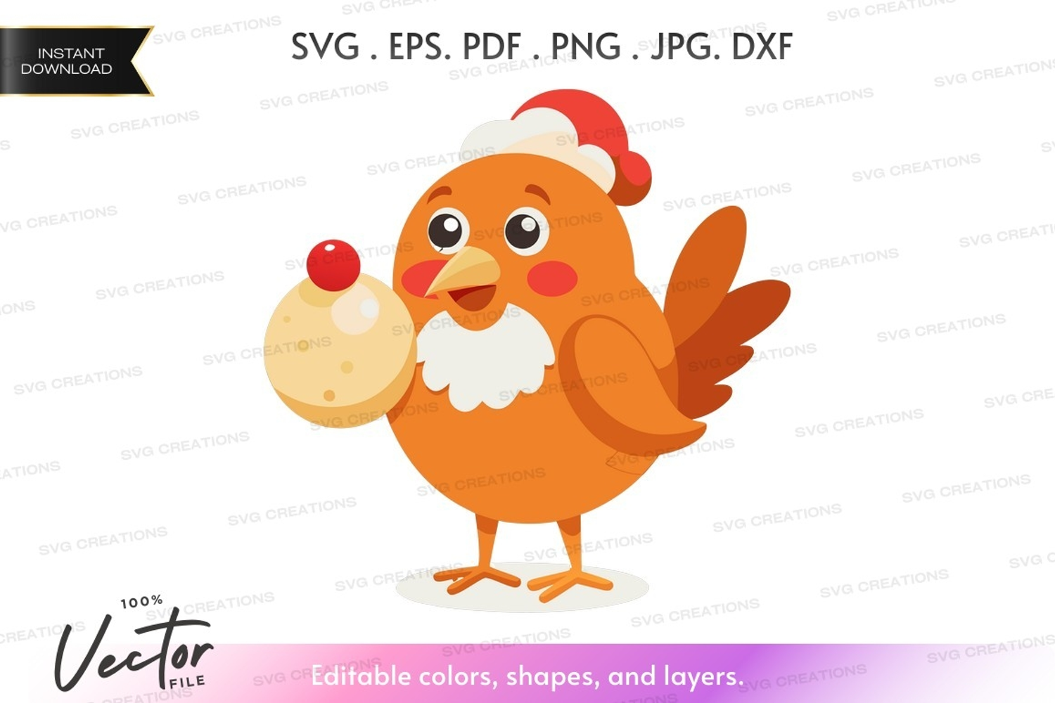 Illustration Cartoon Holiday Cookie Christmas Hat Chicken Festive