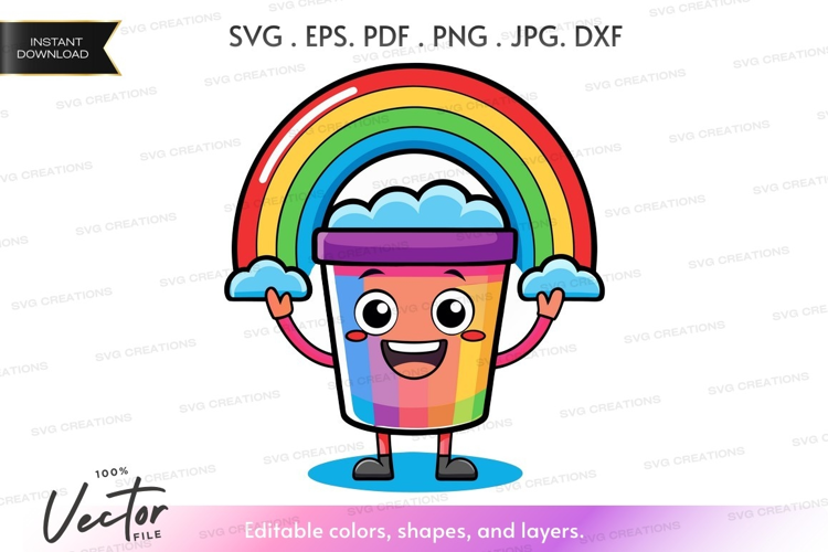 Character Cartoon Vector Happy Colorful Clipart Rainbow Cloud