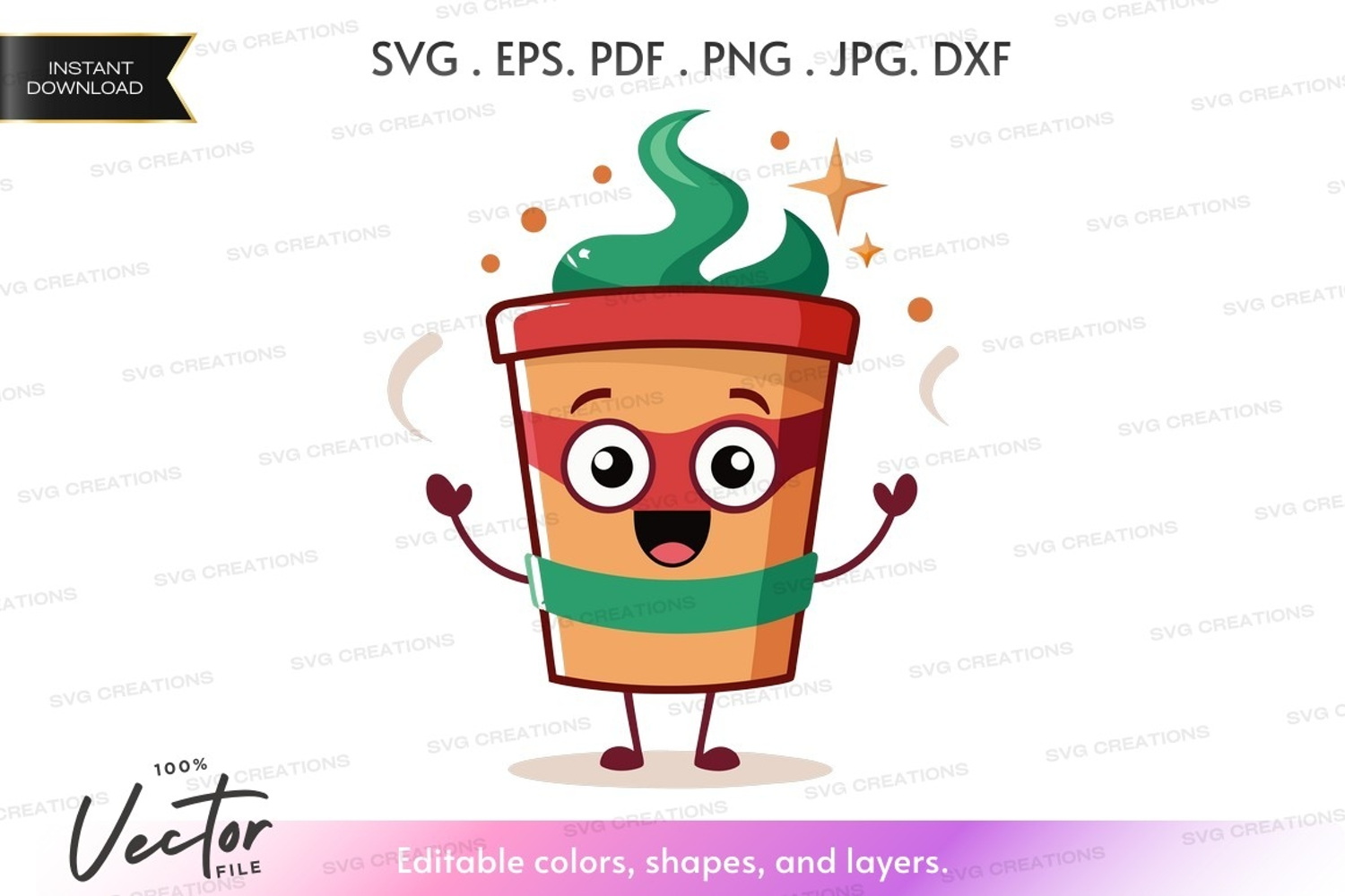 Character Cartoon Coffee Smile Happy Celebration Scarf Steam Cup Sparkles