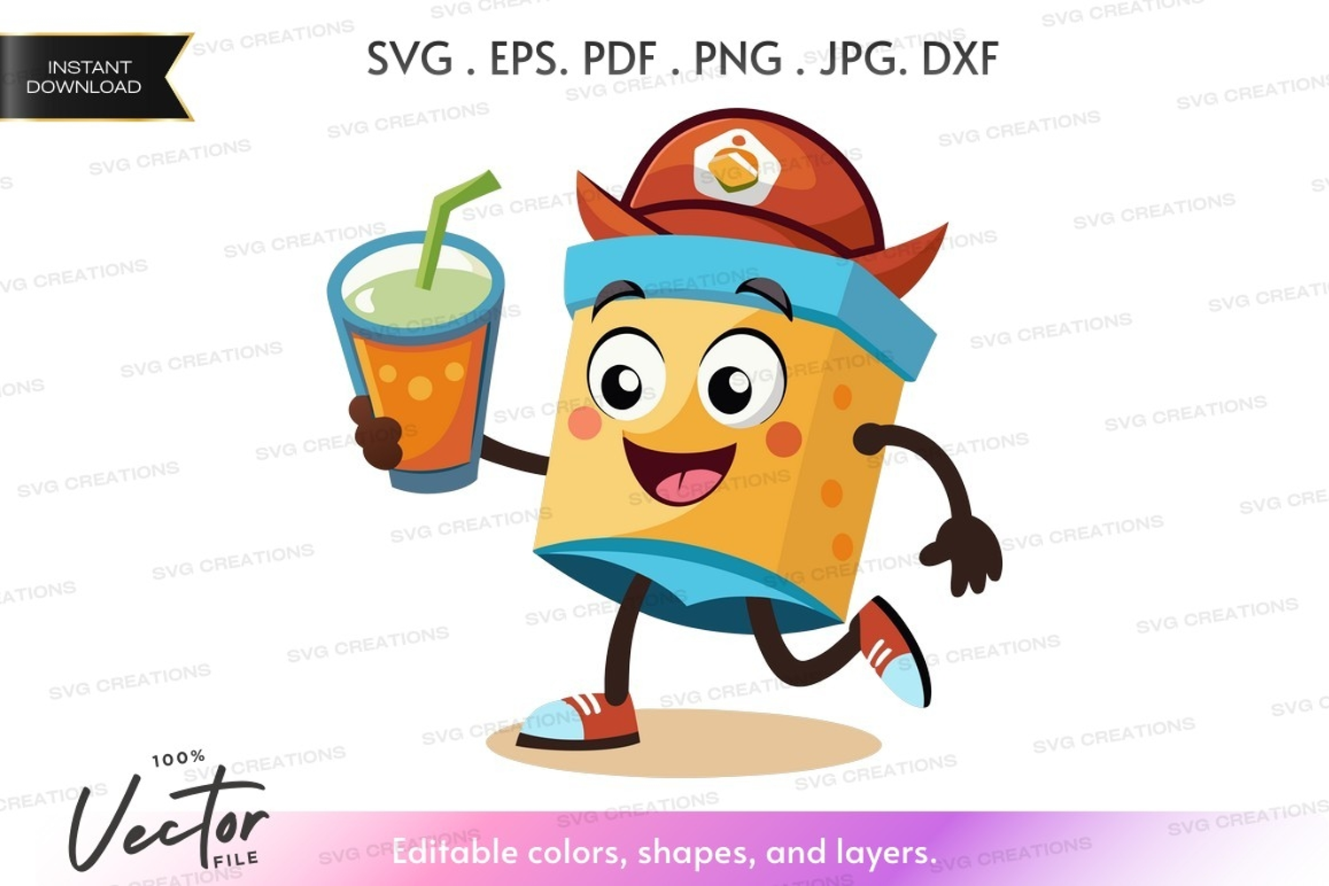 Character Vector Badge Clipart Bandana Drink Cheese Hat Running Straw