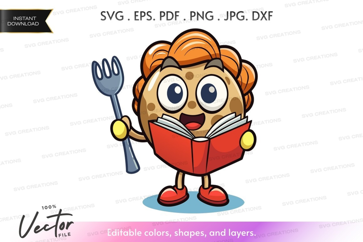 Book Illustration Character Cartoon Cheerful Potato Fork Reading