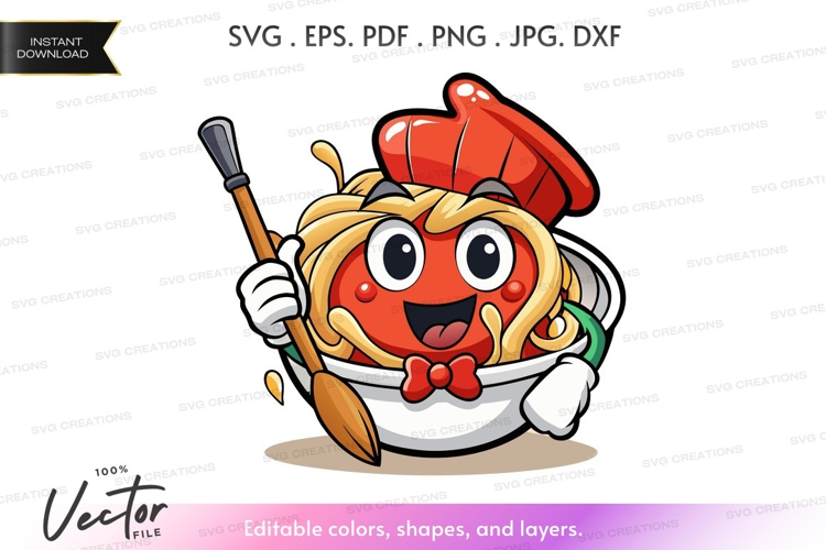 Cartoon Food Restaurant Mascot Italian Chef Chef Hat Pasta Spaghetti Wooden Spoon