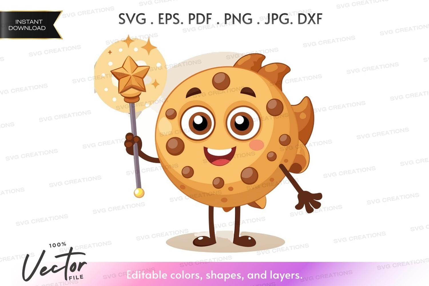 Illustration Character Cartoon Cookie Friendly Wand Magical Sparkles