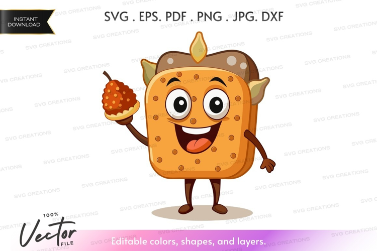 Character Cartoon Friendly Crown Face King Pastry Cracker Large Eyes Big Smile
