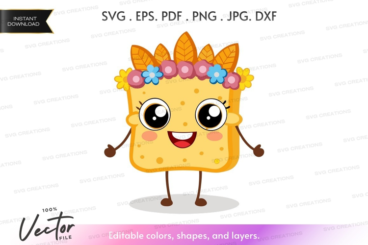 Character Cartoon Smile Happy Friendly Toast Flower Crown Expressive Eyes