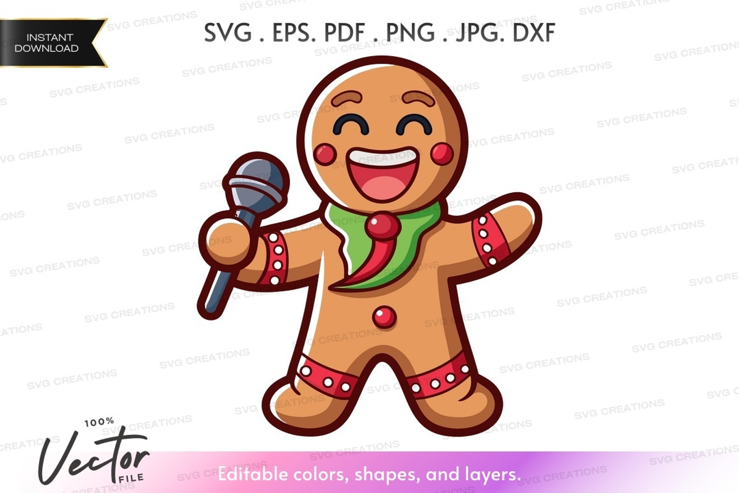 Vector Holiday Christmas Clipart Microphone Gingerbread Man Singing