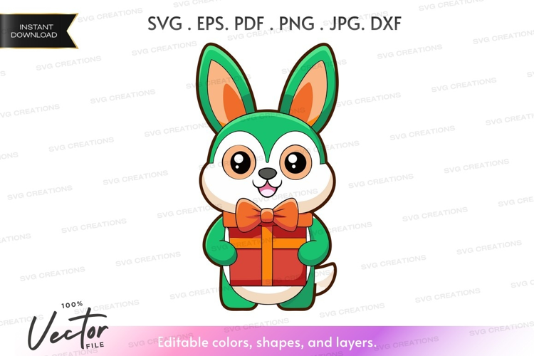 Cute bunny rabbit holding a gift box example image 1