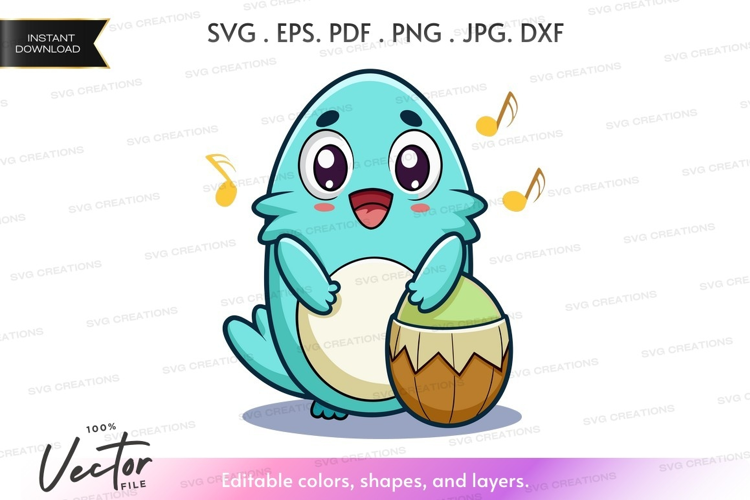 Cartoon Animal Happy Penguin Drum Musical Notes