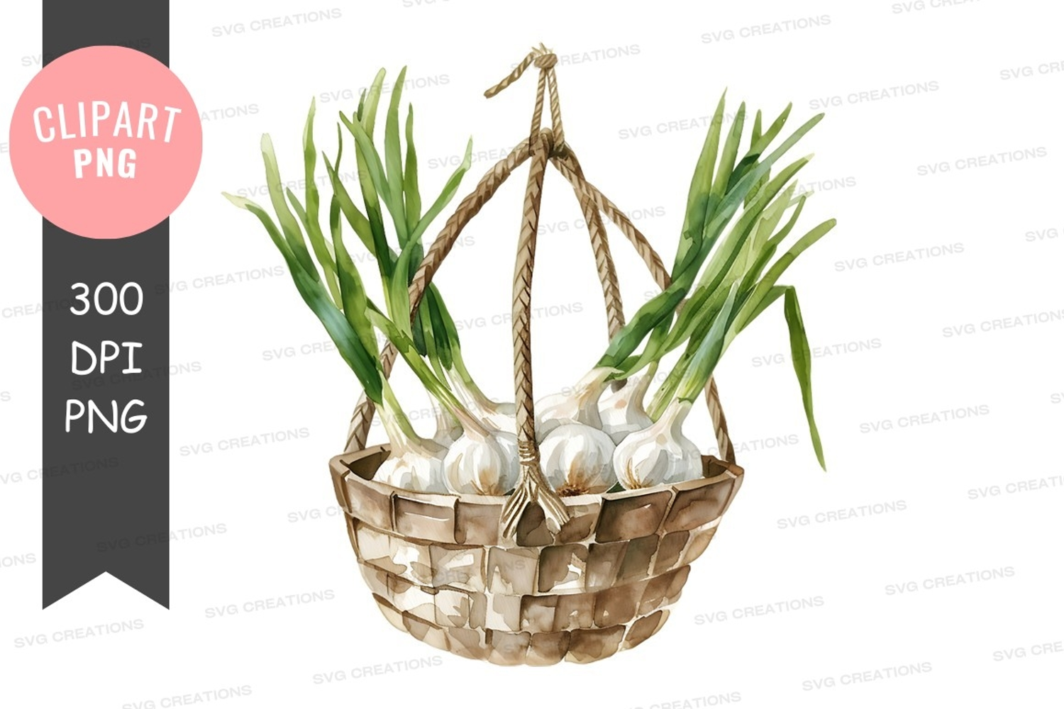 Illustration Watercolor Fresh Harvest Vegetables Garlic Basket