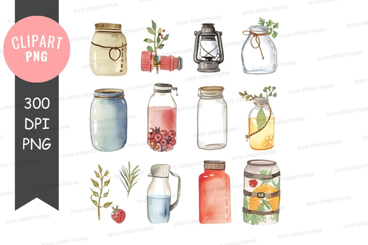 Vintage Decorative Illustration Watercolor Clipart Png Kitchen Home Decor Containers Glass Jars