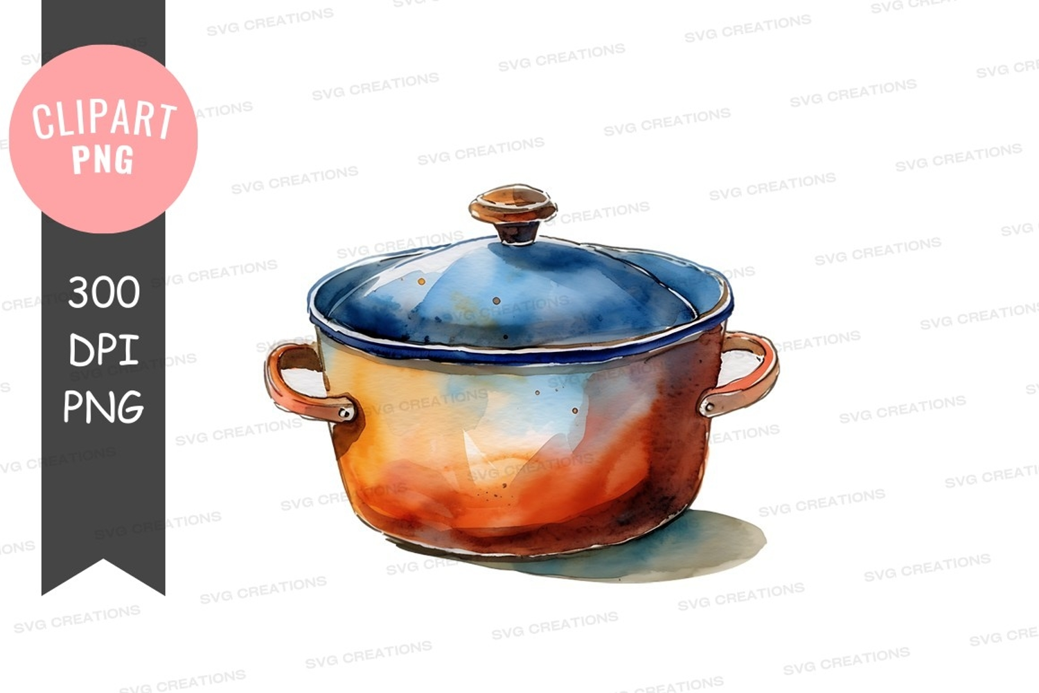 Vintage Illustration Watercolor Hand-painted Clipart Cooking Kitchen Pot Ceramic Cooking Pot