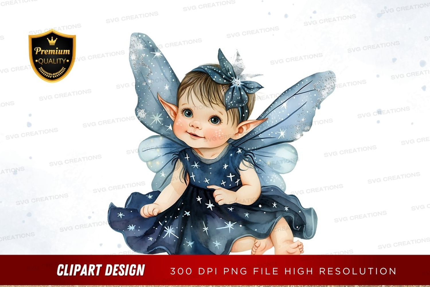Illustration Cartoon Fantasy Fairy Dress Blue Wings Stars