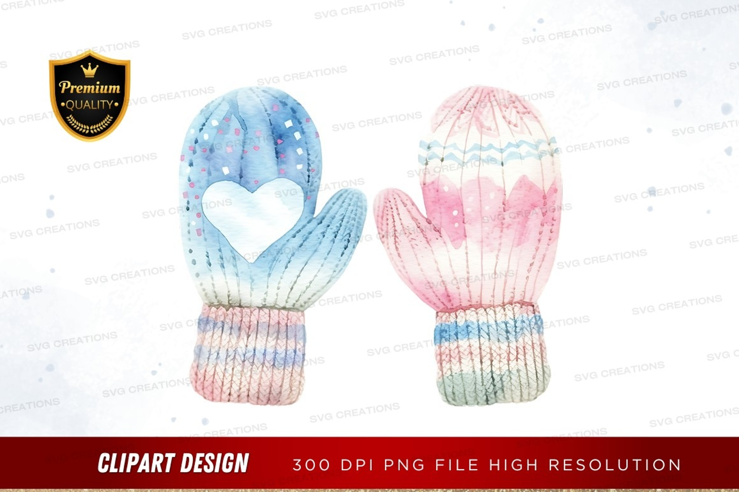 Colorful heart mittens clipart png example image 1