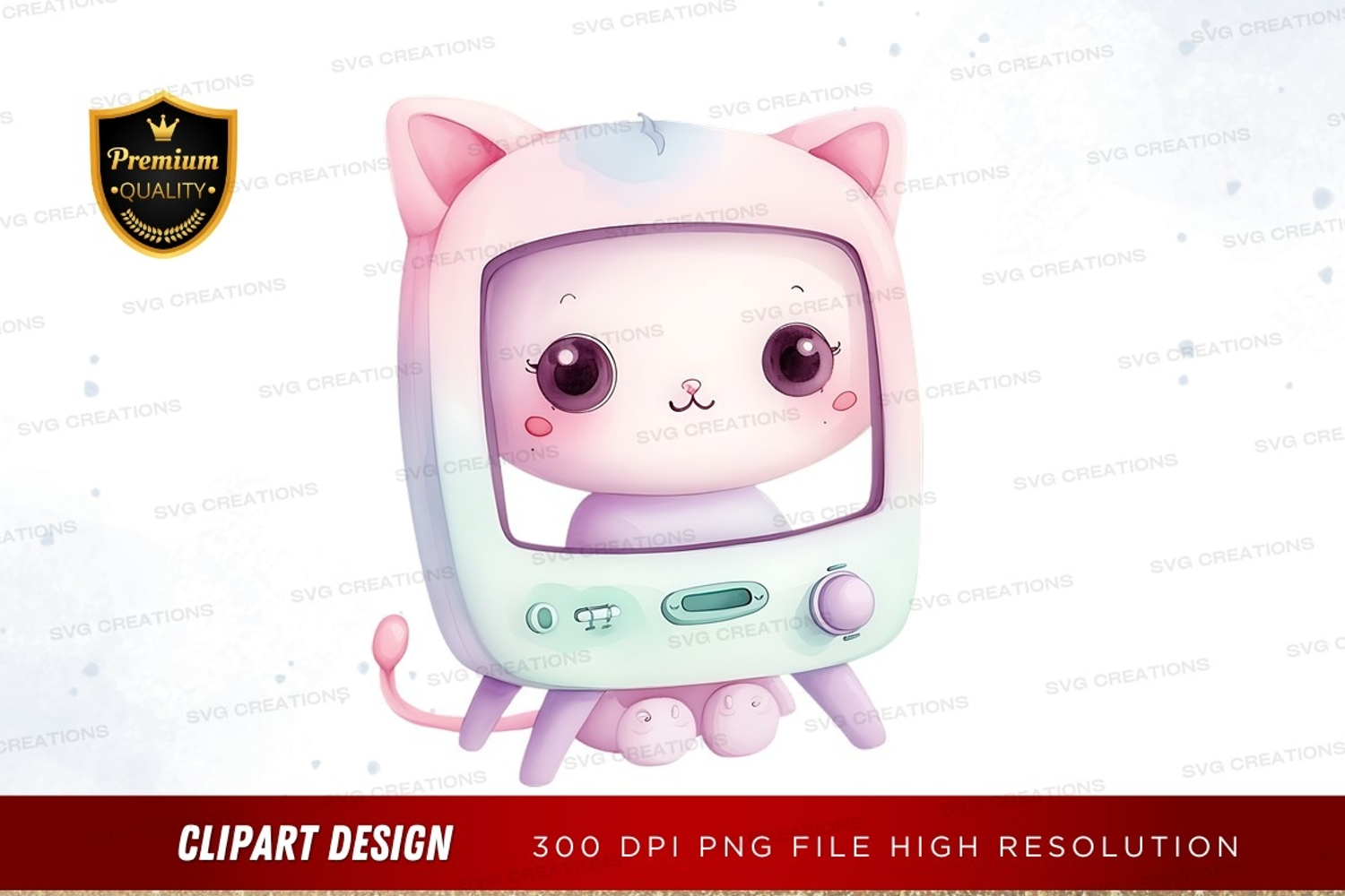 Illustration Cartoon Cute Friendly Clipart Png Cat Unicorn Pastel Tv