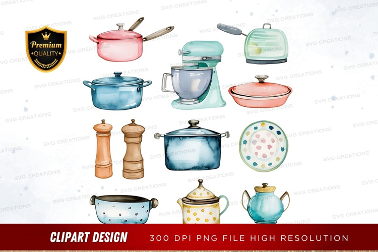Colorful kitchenware clipart png example image 1