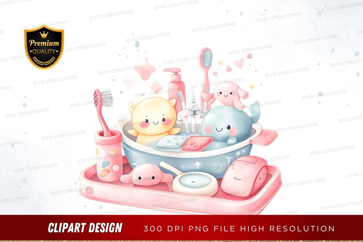 Whimsical bath time with animal friends clipart png example image 1