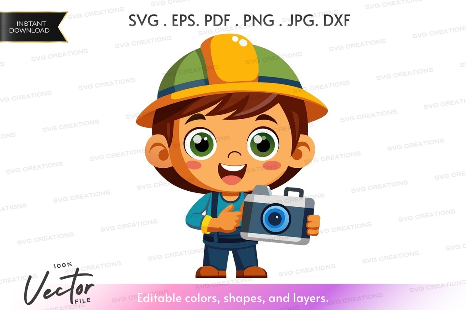 Child Cartoon Happy Adventure Travel Outdoor Boy Hat Camera Explorer