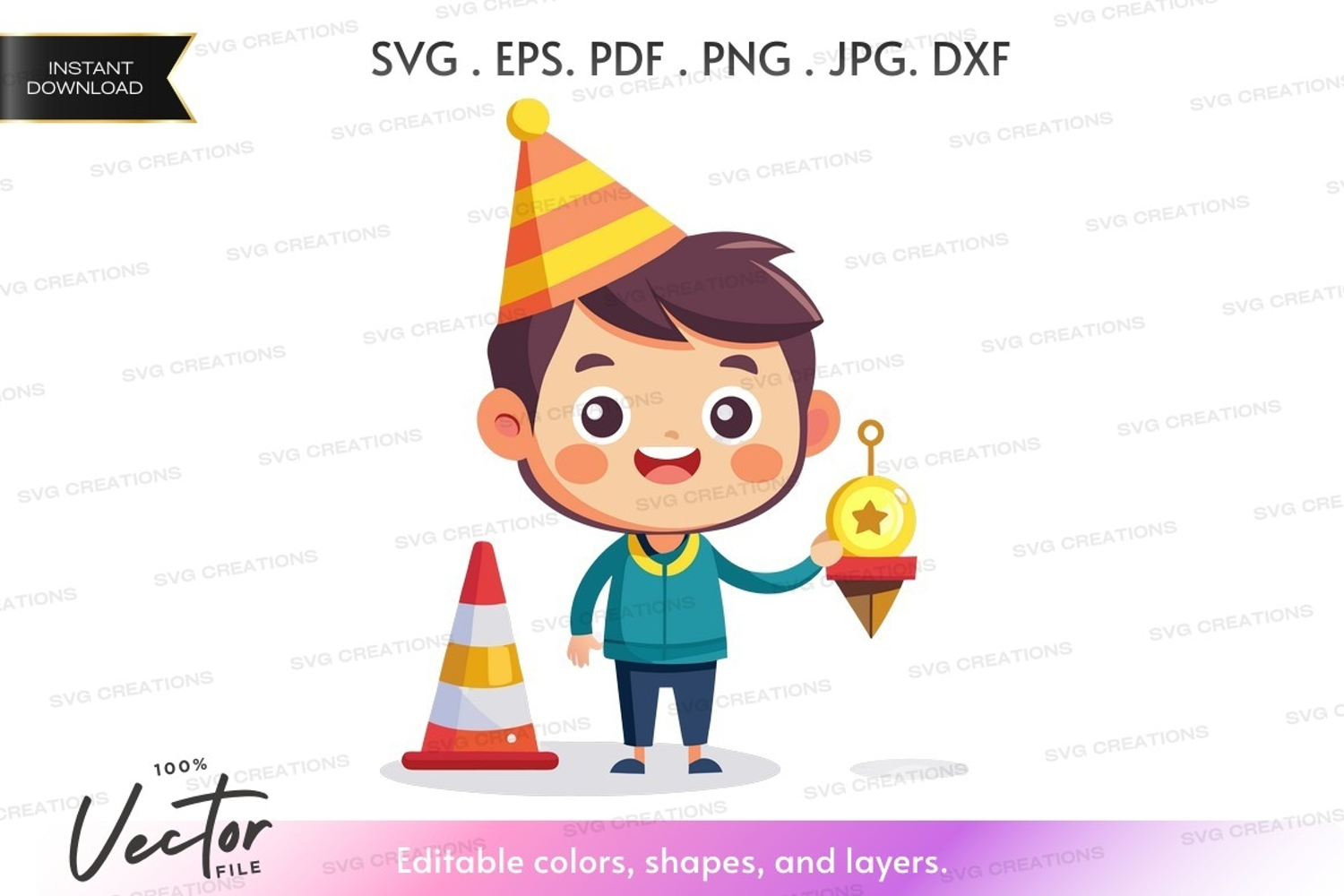 Child Cartoon Celebration Hat Construction Star Vector Clipart Trophy Traffic Cone