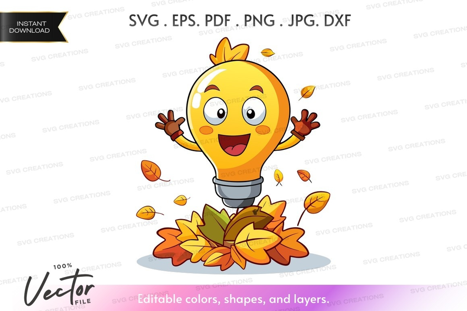 Cartoon Funny Happy Autumn Fall Leaves Seasonal Light Bulb Joyful Falling Leaves