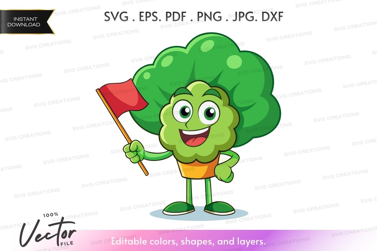 Character Cartoon Smile Happy Vegetable Flag Broccoli Red Flag Anthropomorphic