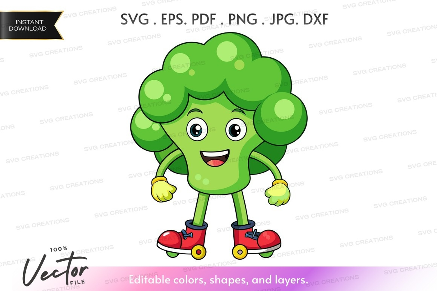 Character Cartoon Vector Happy Clipart Vegetable Broccoli Roller Skating