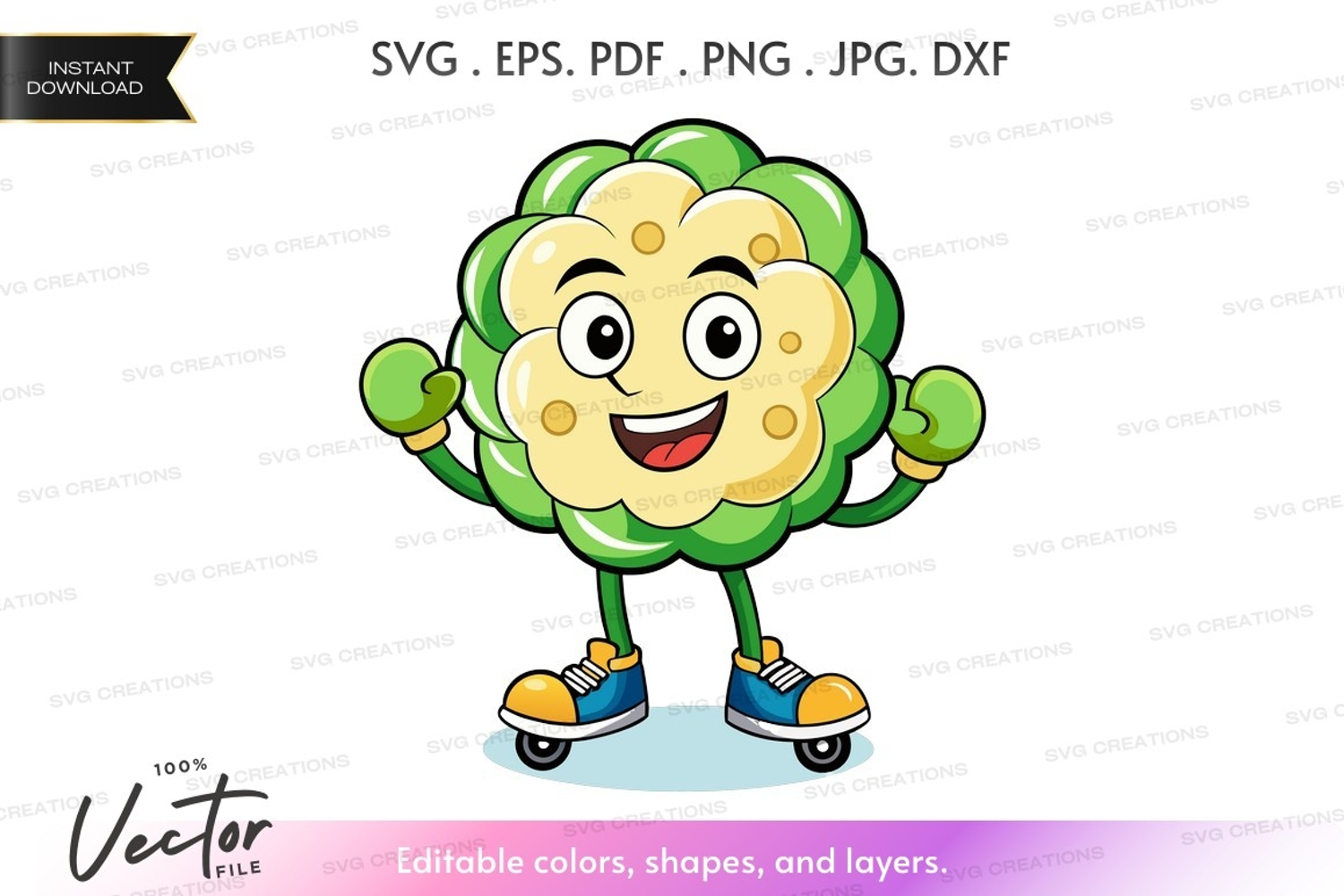 Character Cartoon Fun Smile Happy Pose Vegetable Roller Skates Broccoli Skating