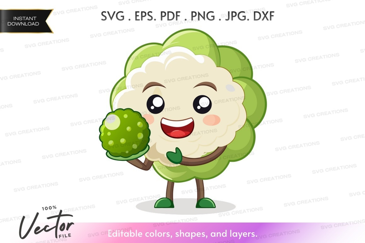 Character Cartoon Funny Food Smile Green Happy Vegetables Broccoli Cauliflower