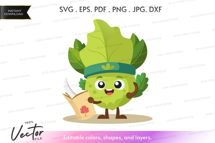 Book Character Cartoon Vector Happy Silhouette Clipart Lettuce Headband Four-leaf Clover
