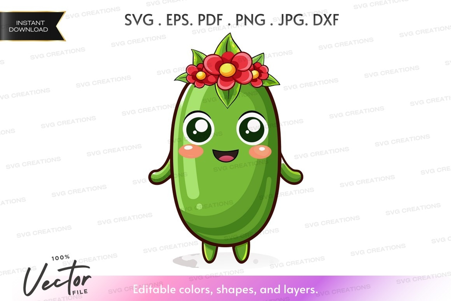 Character Vector Happy Friendly Flower Silhouette Clipart Crown Avocado