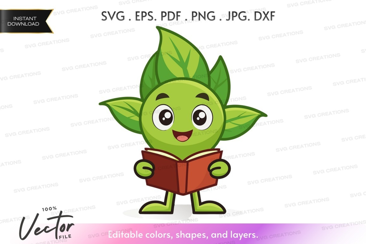 Book Character Cartoon Happy Leaf Education Reading Learning