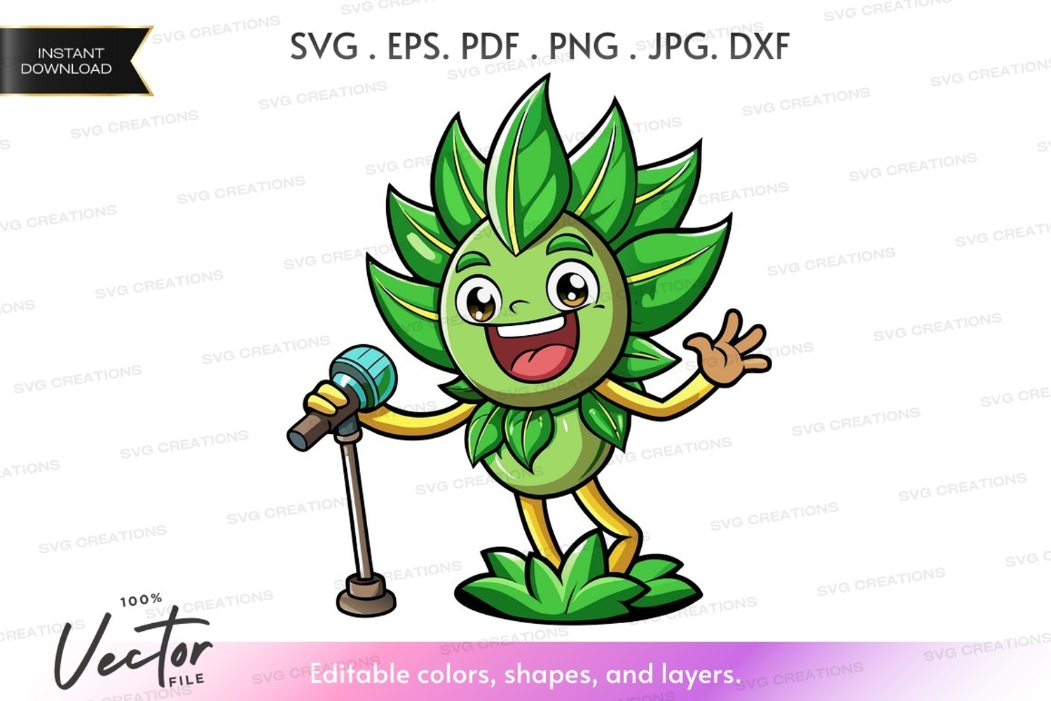 Cartoon Green Happy Leaf Mascot Microphone Performance Animated Singing Sunflower