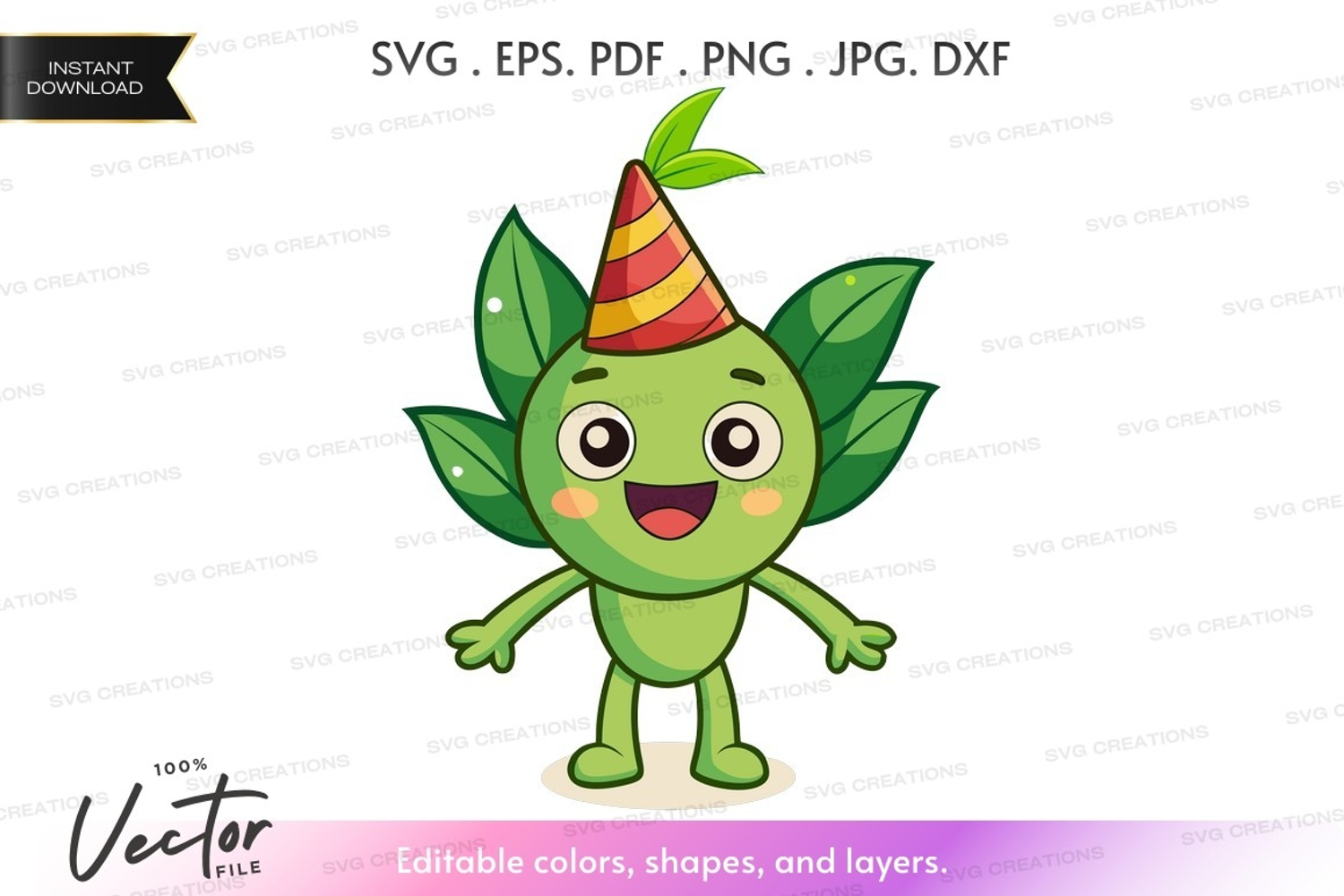 Cartoon Party Green Happy Leaf Hat Creature Celebrate