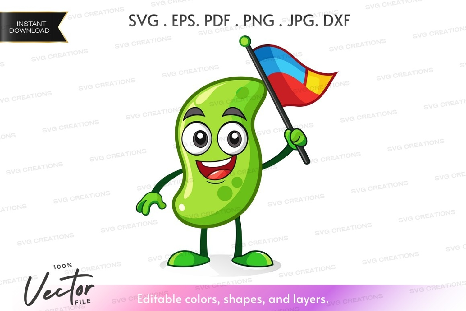 Character Cartoon Vector Happy Friendly Silhouette Clipart Mascot Flag Green Bean
