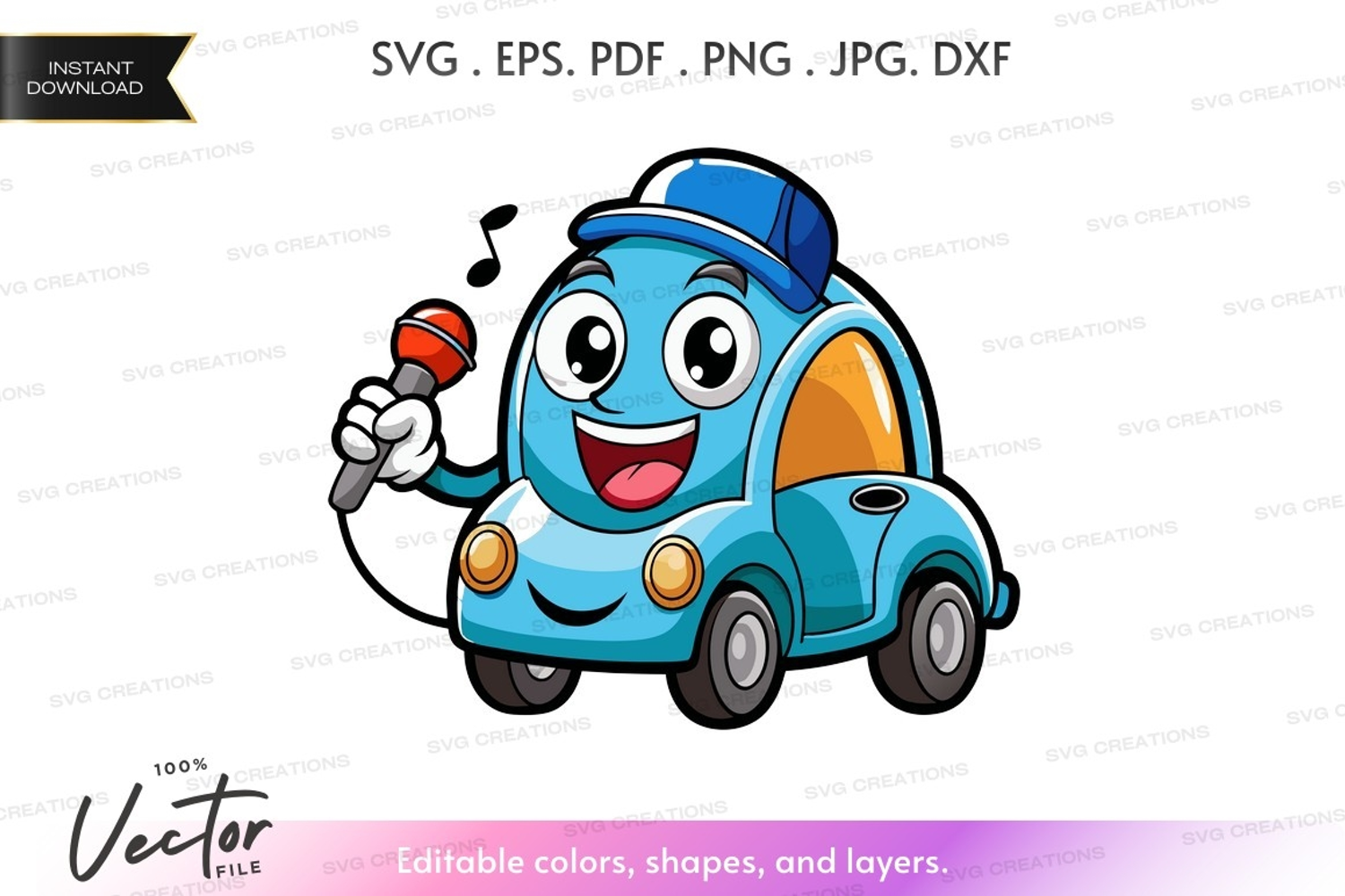 Cartoon Music Happy Blue Car Vehicle Microphone Singing