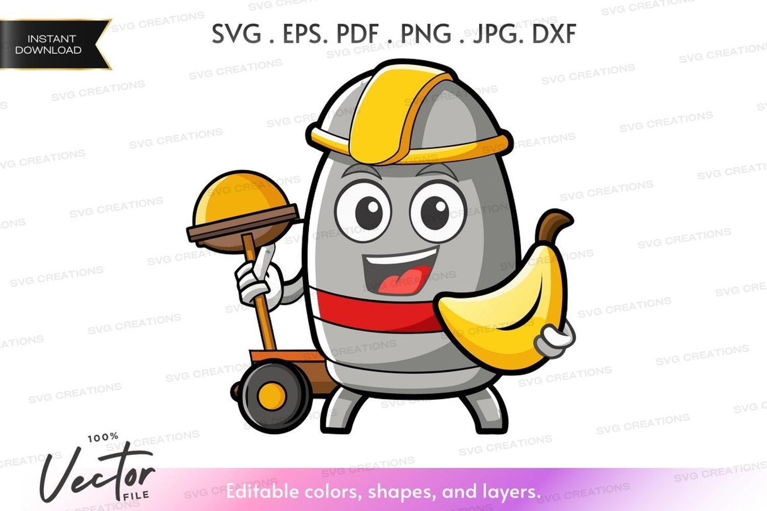 Silhouette Clipart Banana Pickaxe Miner Hardhat Cart