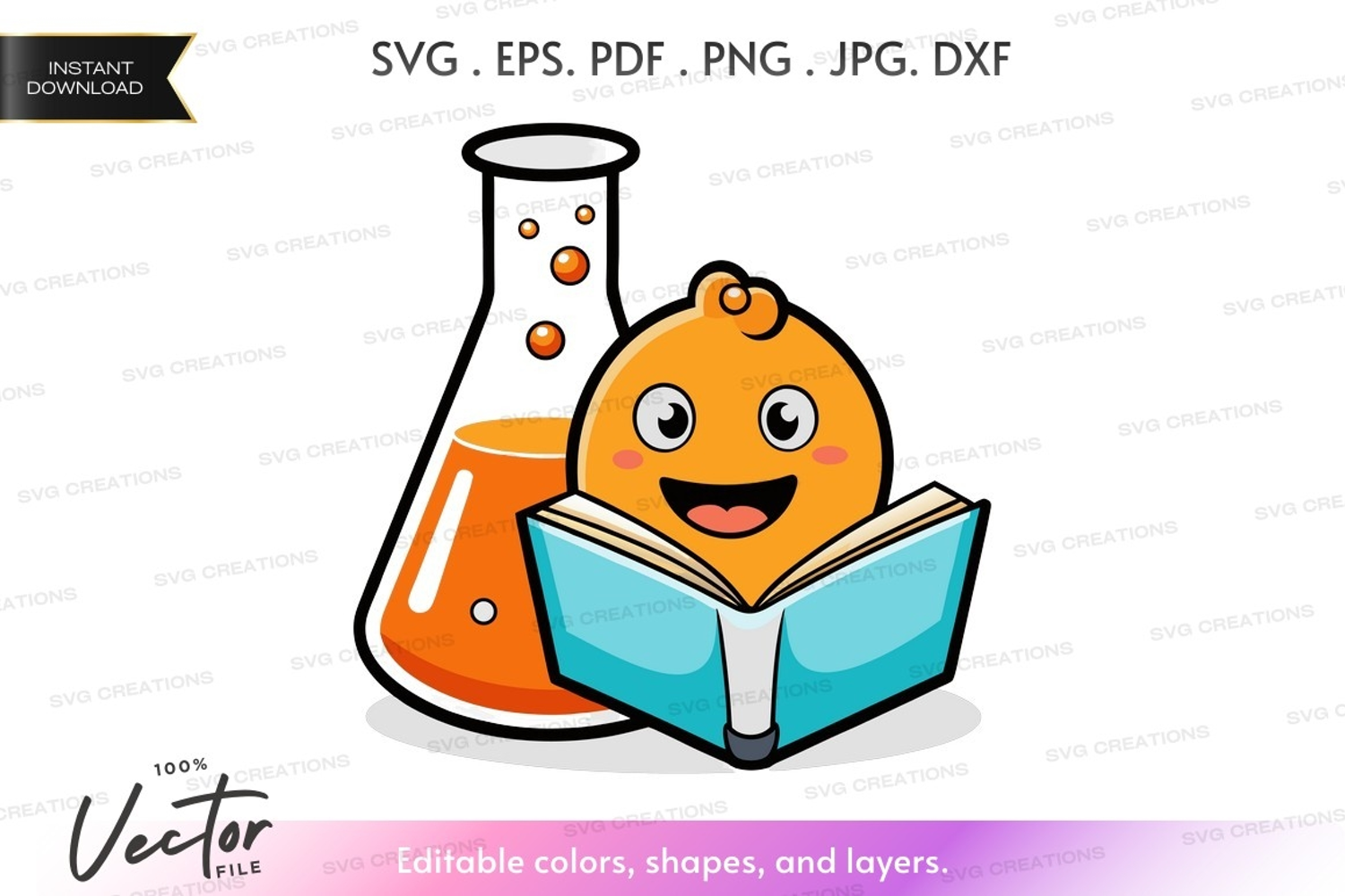 Book Happy Science Education Smiling Reading Learning Beaker Science Experiment Orange Character