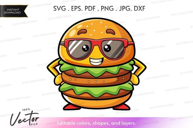Cartoon Funny Food Clipart Burger Sunglasses Vector Silhouette