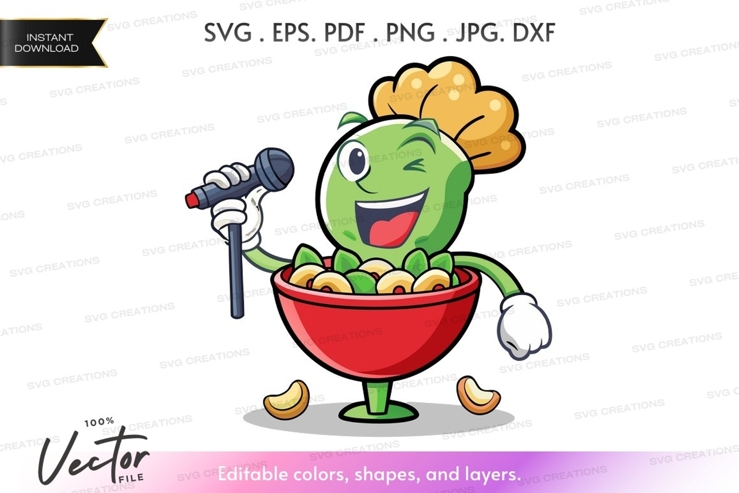 Cartoon Funny Food Cheerful Microphone Entertainment Broccoli Singing Popcorn