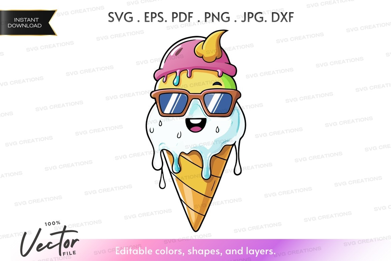 Cartoon Funny Summer Colorful Clipart Ice Cream Dessert Sunglasses Vector Silhouette