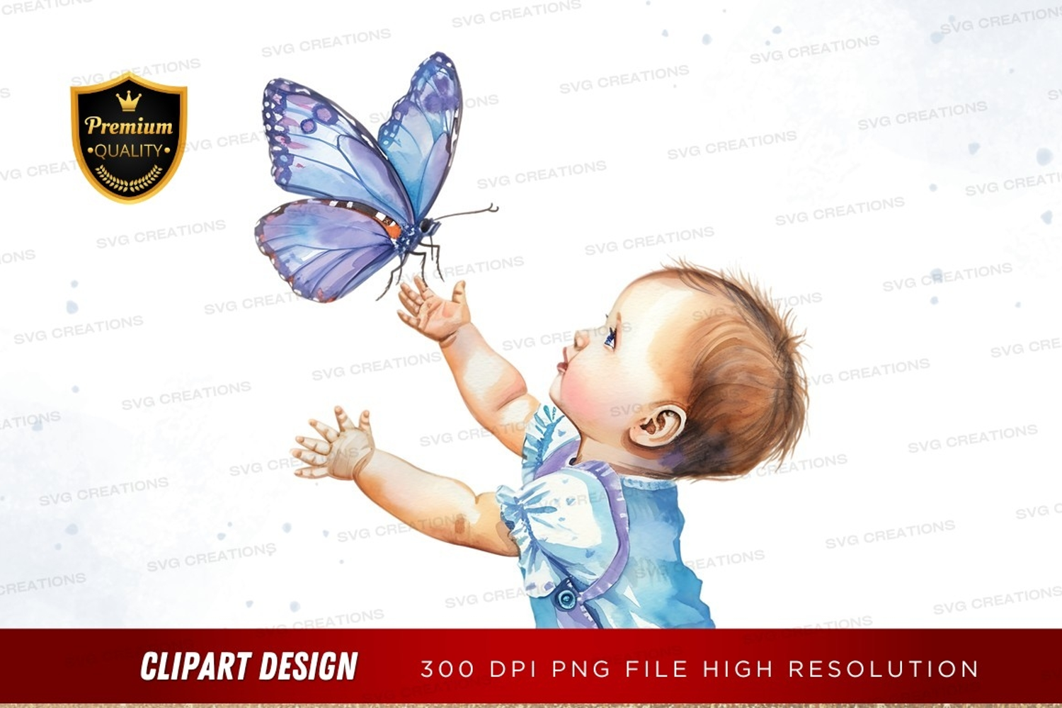 Baby Clipart Blue Butterfly Png Curiosity Wonder Reaching Out