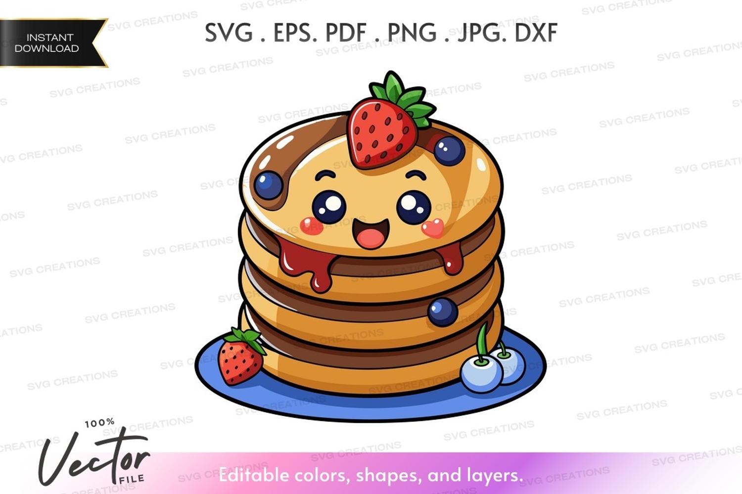 Illustration Food Clipart Strawberry Berries Blueberries Breakfast Stack Pancakes