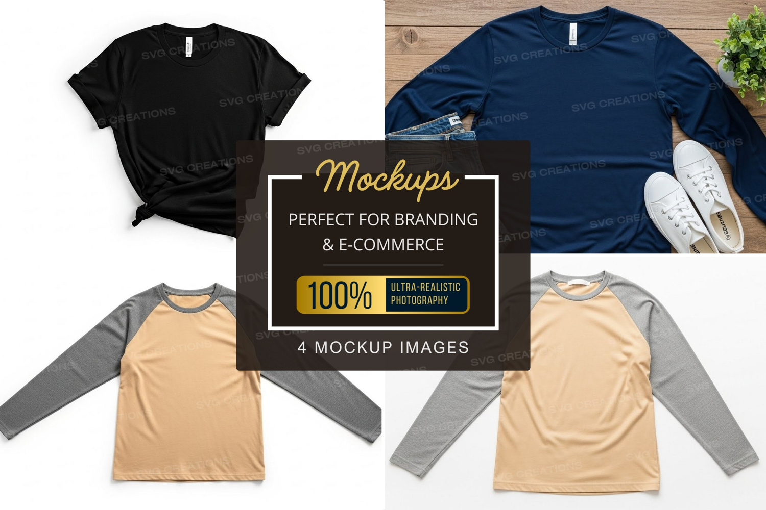 T-shirt Mockup Jeans Sneakers Black T-shirt Casual Wear Navy Blue T-shirt Beige Long-sleeve Grey Long-sleeve