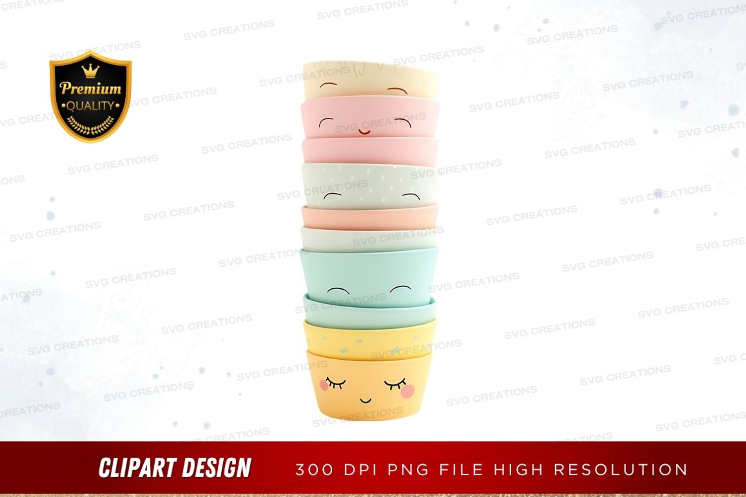 Clipart Png Pastel Stack Cups Pastel Colors Cute Faces Clay Cups