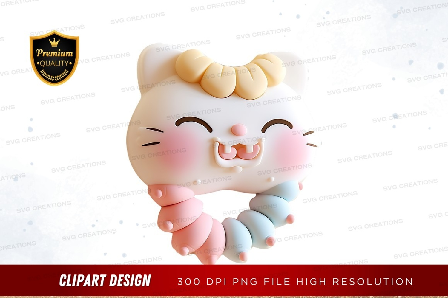 Illustration 3d Cute Clipart Cat Cheerful Pastel Caterpillar